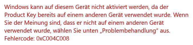 Fehlercode 0xc004c008 tritt normalerweise auf, wenn Sie versuchen, Windows mit einem bereits verwendeten Produktschlüssel zu aktivieren. Um diesen Fehler zu beheben, können Sie folgende Schritte ausprobieren:
